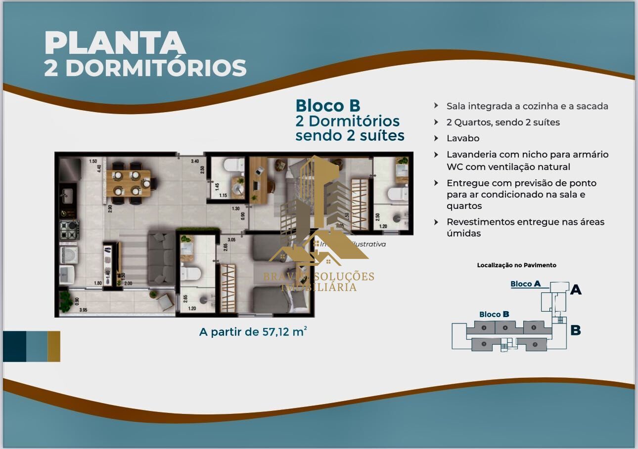 🛏️ 2 Dormitórios – a partir de 57,60m²