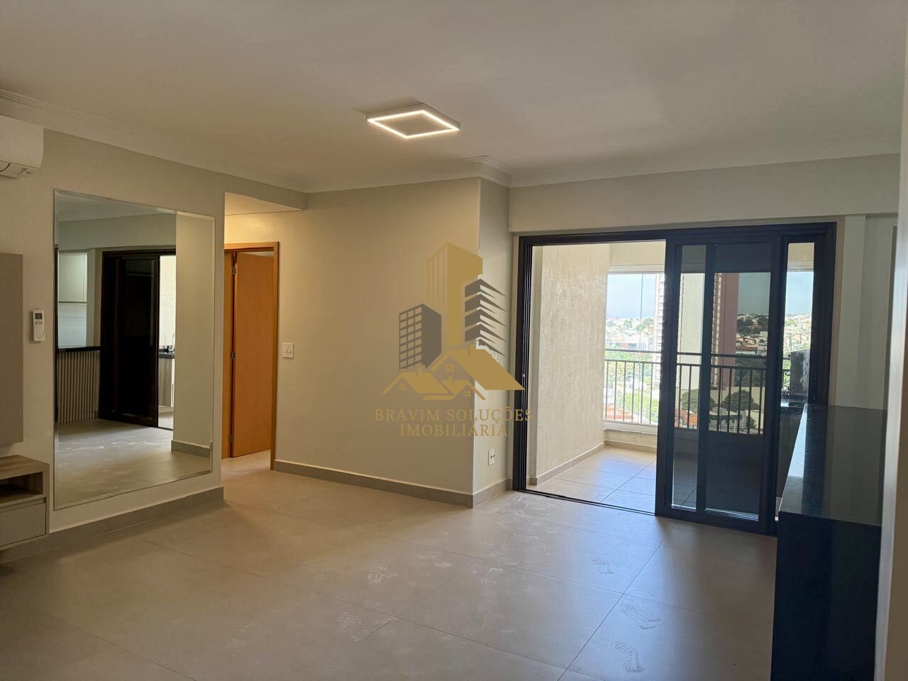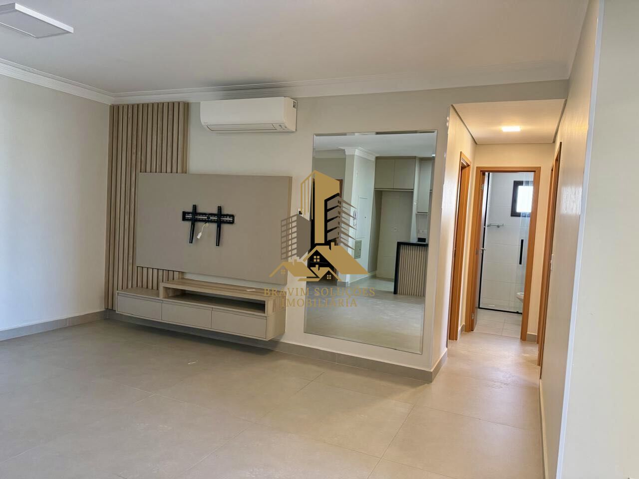 A cozinha é integrada à lavanderia e já equipada com cooktop, enquanto a sala possui ar-condicionado, garantindo conforto em todas as estações.