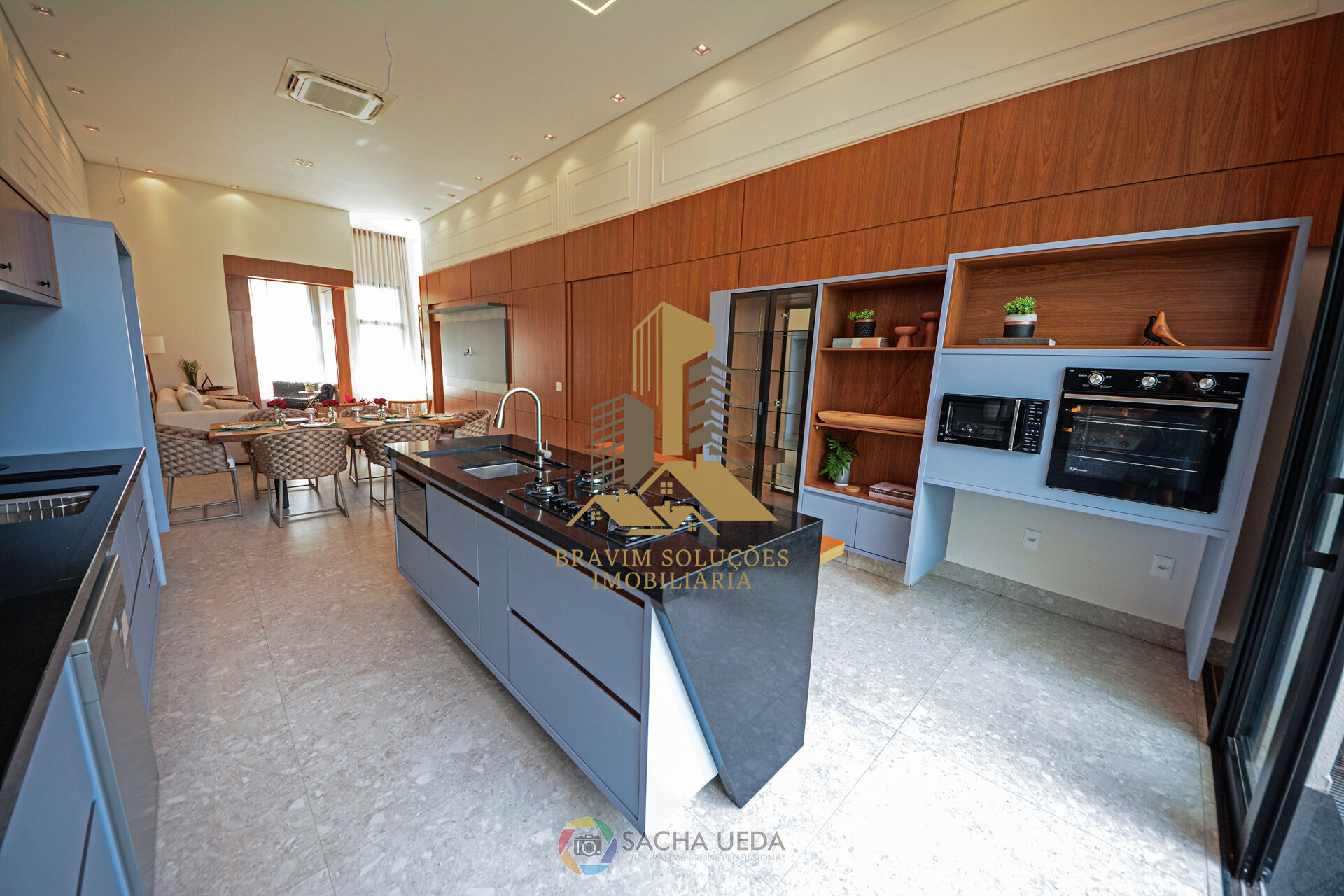 - Cozinha planejada com cooktop, forno, micro-ondas e máquina de lavar louça