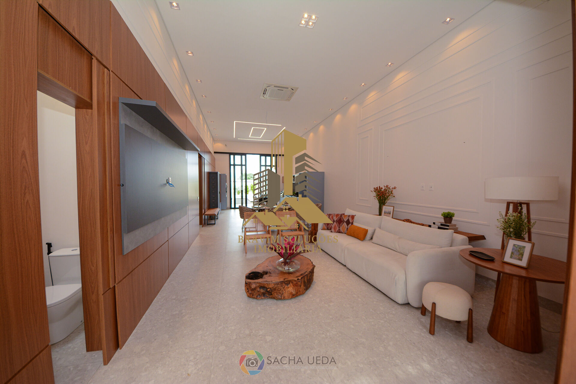- Sala de estar integrada à sala de jantar, proporcionando amplitude e luminosidade